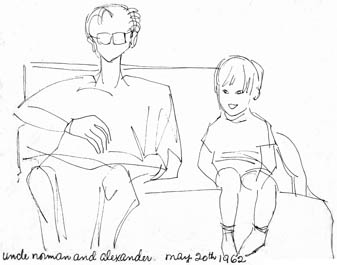 ![]() Laurentians & the NFBWe returned to Canada in 1958. Dad was not welcomed back to the Film Board as he hoped. After a few months in Montreal, staying with friends, my parents found a cottage in St. Sauveur, deep in the Laurentian woods, followed by a log cabin in Ste. Marguerite Station. I spent most of my time there exploring the woods, fields and lakes, sometimes alone or tagging along after my big brothers. We became independent at a very young age. Dad freelanced as an editor for other NFB producers. Those films included the award winning film "A is for Architecture" and a two part documentary on Glenn Gould, "Off the Record" and "On The Record". For two years he became the Host and Moderator of CBC's Public Affairs Television Series "Let's Face It". Dad forged a new kind of relationship with the NFB as an independent producer and produced a four part Series of the Religions of the World that he co hosted with universal historian Arnold Toynbee, exploring his new world view. Sometimes my parent's friends from the National Film Board would come to visit. Norman McLaren and Guy Glover stayed with us on the weekends and once stayed for a whole summer. Norman, who was Godfather to my oldest brother Alex, taught us how to use oil pastels. We would draw pictures together. Alex developed a very unique style of drawing with oil pastels and ink as a result.